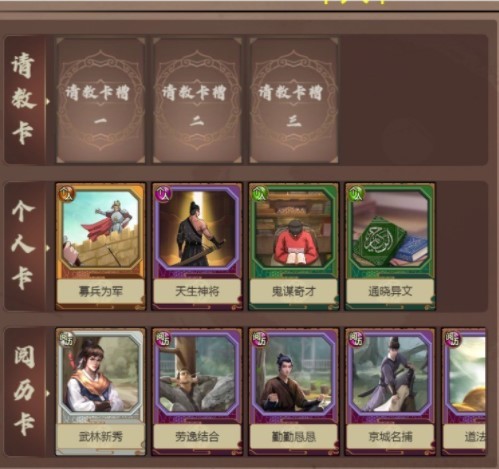 5、寻找名臣,请教以下卡牌:祖传剑法,武学世家。