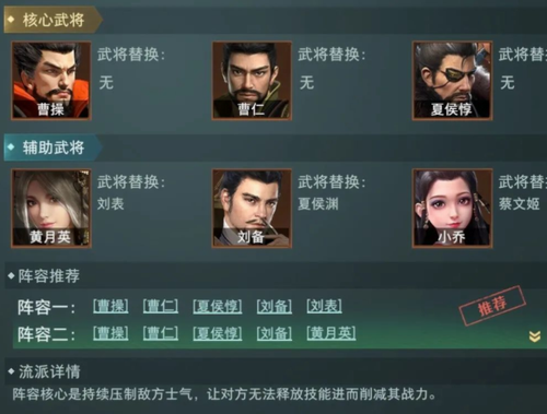 士气压制流,即通过多位能减少敌方士气的武将,来精准控制敌方士气,从而延缓敌方武将技能的释放,甚至让对方放不出技能。稳定控制,先发制人,经常能让敌人无法发力就将其干掉。