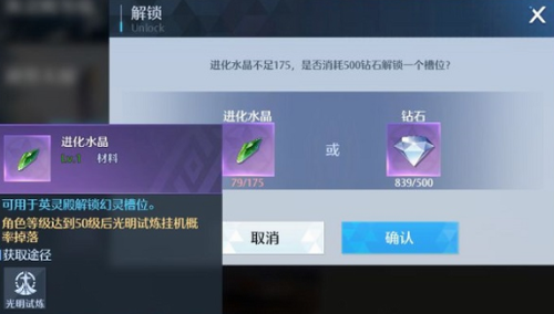 1、途径:进化水晶在【光明试炼玩法50层后】产出。