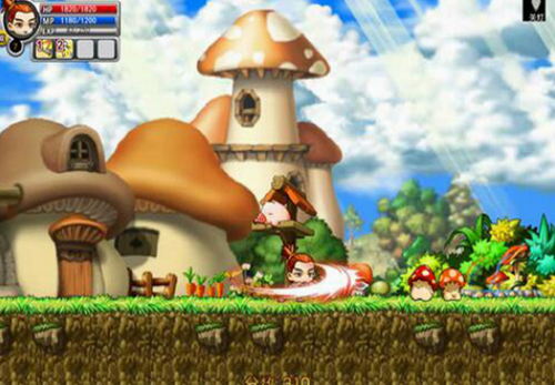 蘑菇王出现在第二张地图上,而且这张地图比较特殊,因为有精灵的出现。