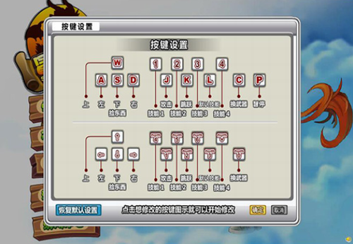 2、玩家二:方向键←→键移动,1攻击,2跳跃,3拾取道具,0换武器。本游戏支持自定义按键!