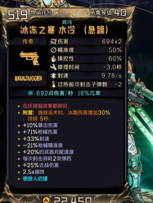 水冷这把手枪我个人认为是全游戏dps最高的枪械。大家不需要像我这种非得混沌的,正常的一把水冷就够乱杀混沌20了。
