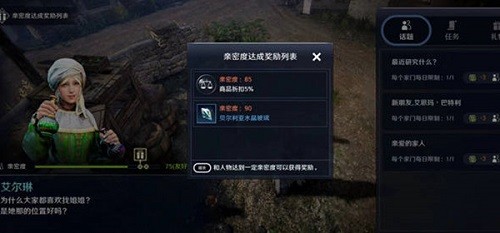 2:我们首先来到贝尔利亚这个地方,然后我们找到杂货商人艾尔林,然后我们在三个选项中选择亲密度这个选项,如图所示