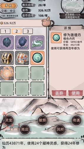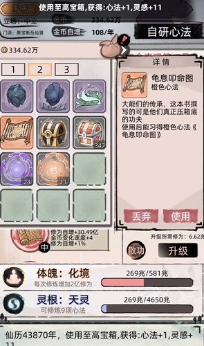 1:仙树是游戏中近期新加入的一个功能,在背包中的宝物之类的可以放进仙树旁边的时空胶囊里转生后的时候继续使用;