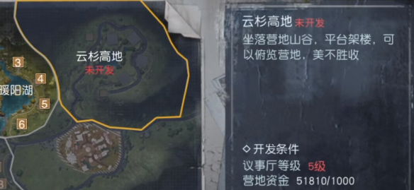 5、随着营地的等级不断提升,可以解锁更高级的开发地区,用来给营地成员居住。